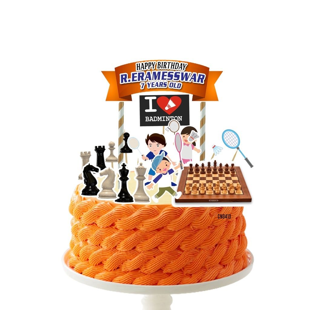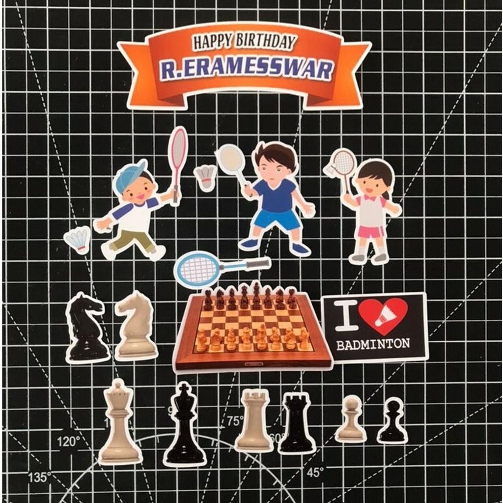 [CUSTOM NAME] Happy Birthday Cake Topper badminton mix chess Decoration Set Party Accessories Banner Hiasan Kek Design