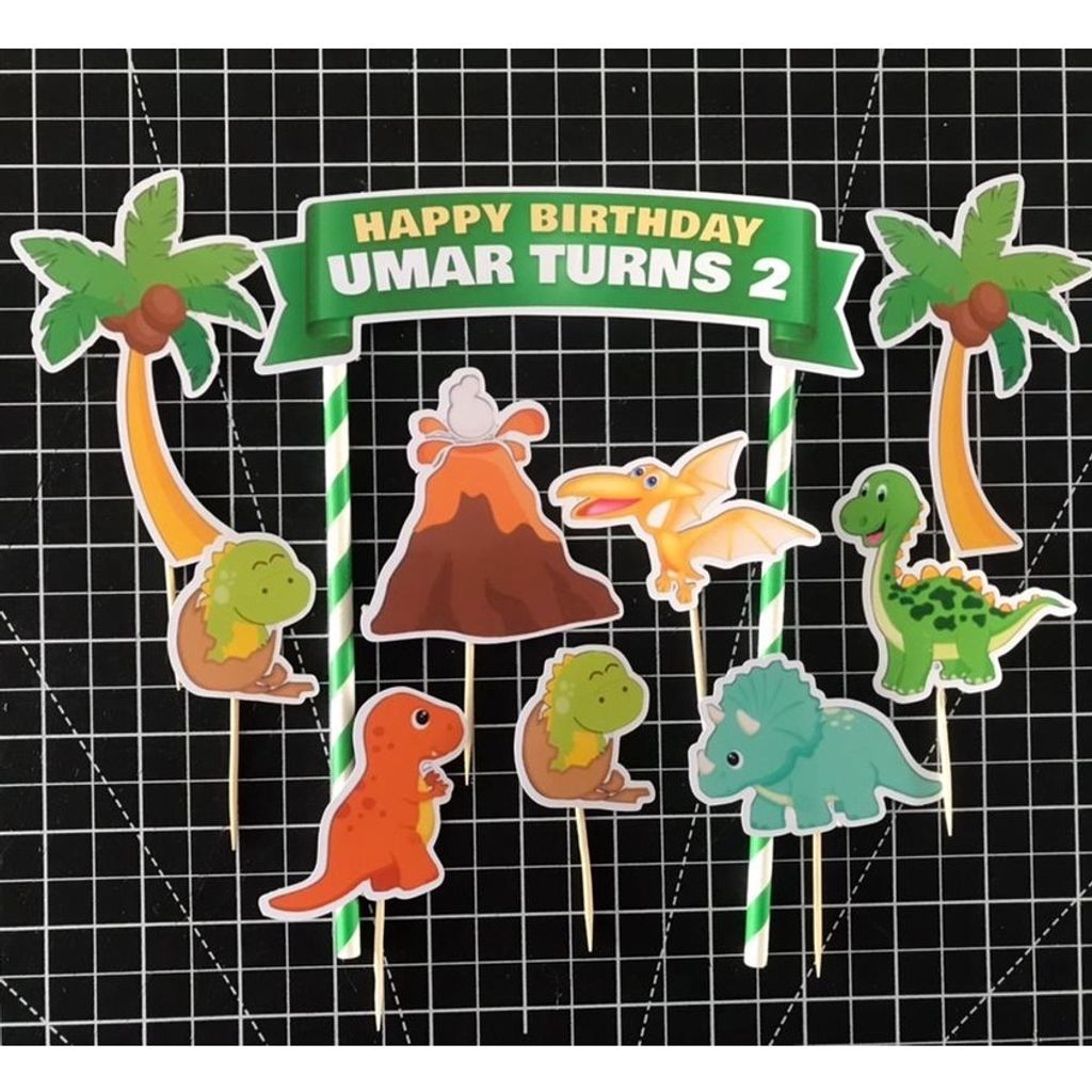 [CUSTOM NAME] Happy Birthday Cake Topper Dino Baby Cute Dinasour Decoration Set Party Accessories Banner Desi